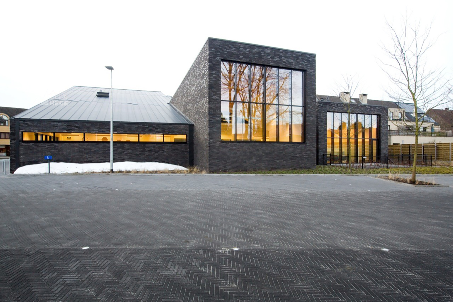 設(shè)計體現(xiàn)了對建筑尺度的感知,建筑的體量被細(xì)分成規(guī)模較小的部分,更好反映了當(dāng)?shù)氐慕ㄖ愋停@種類型與單個塊體相反。建筑看起來像一系列獨立部分,每個部分有自己的屋頂輪廓和特性。出現(xiàn)在每個獨立單元前后的有大型窗戶也標(biāo)明了分區(qū)。高標(biāo)準(zhǔn)建筑隔熱、高性能熱窗和太陽能電池板使建筑K值能達(dá)到31。白天使用置換通風(fēng),而晚上采用自然通風(fēng)。屋頂?shù)奶柲茈姵匕迕磕昴墚a(chǎn)生大約8.7千瓦時電能。