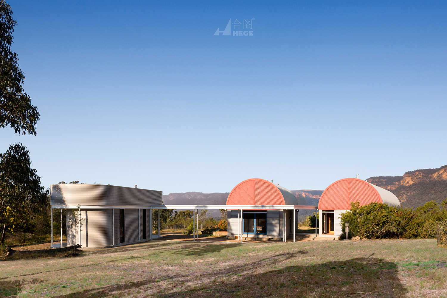 建筑是三個獨立的亭子的一部分,每個亭子都包含睡眠、生活和工作的功能,反映了和諧的生命周期平衡,并與自然環(huán)境交織在一起。
