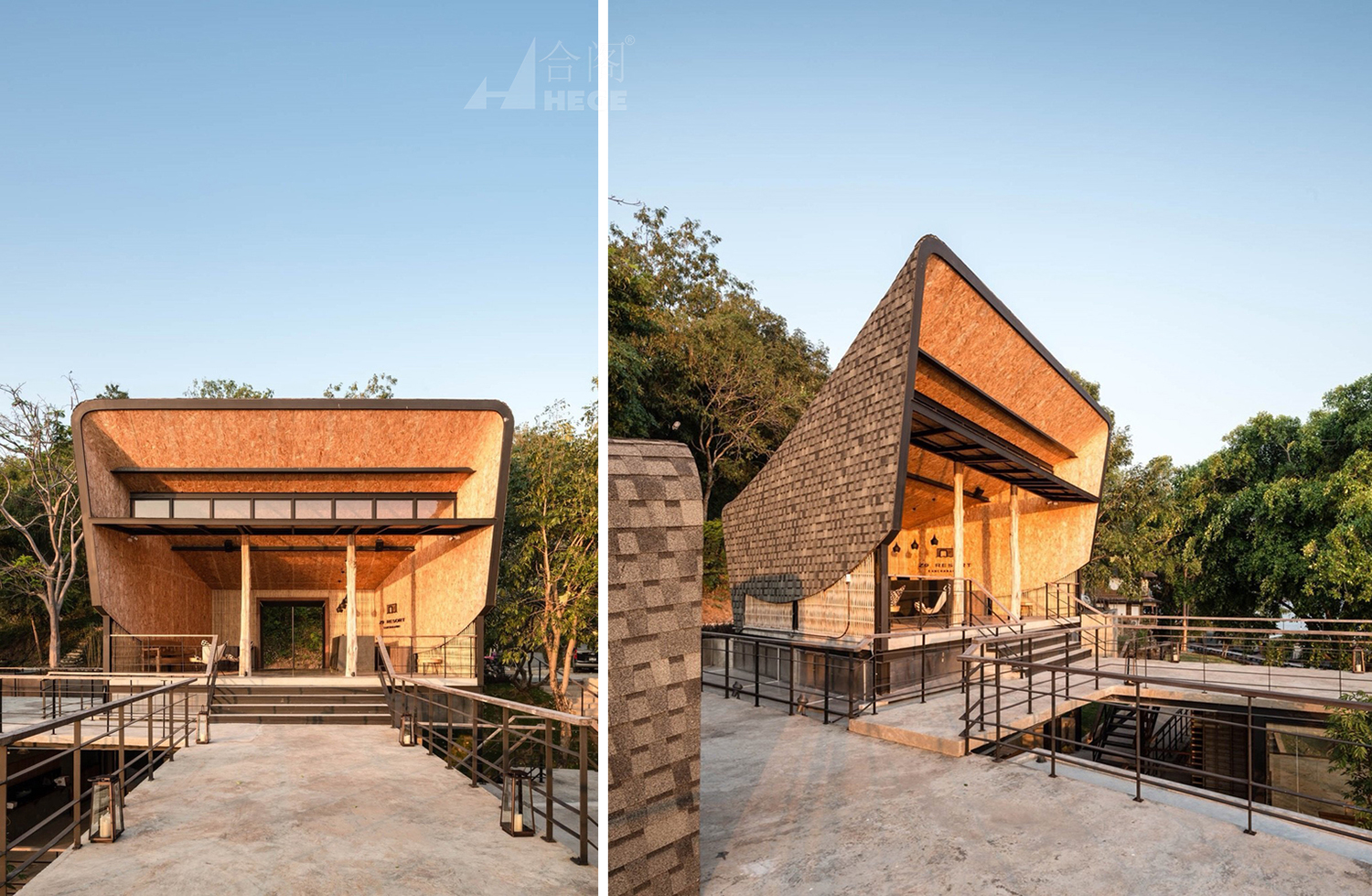 首先,重用。再利用的概念是指利用現(xiàn)有度假村的現(xiàn)有木材。這些舊木材被用作度假勝地的裝飾品。作為天花板的OSB板是重用概念的另一個方面。這是因為OSB板是由多層的木片壓縮而成的。