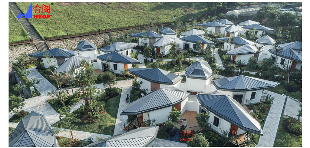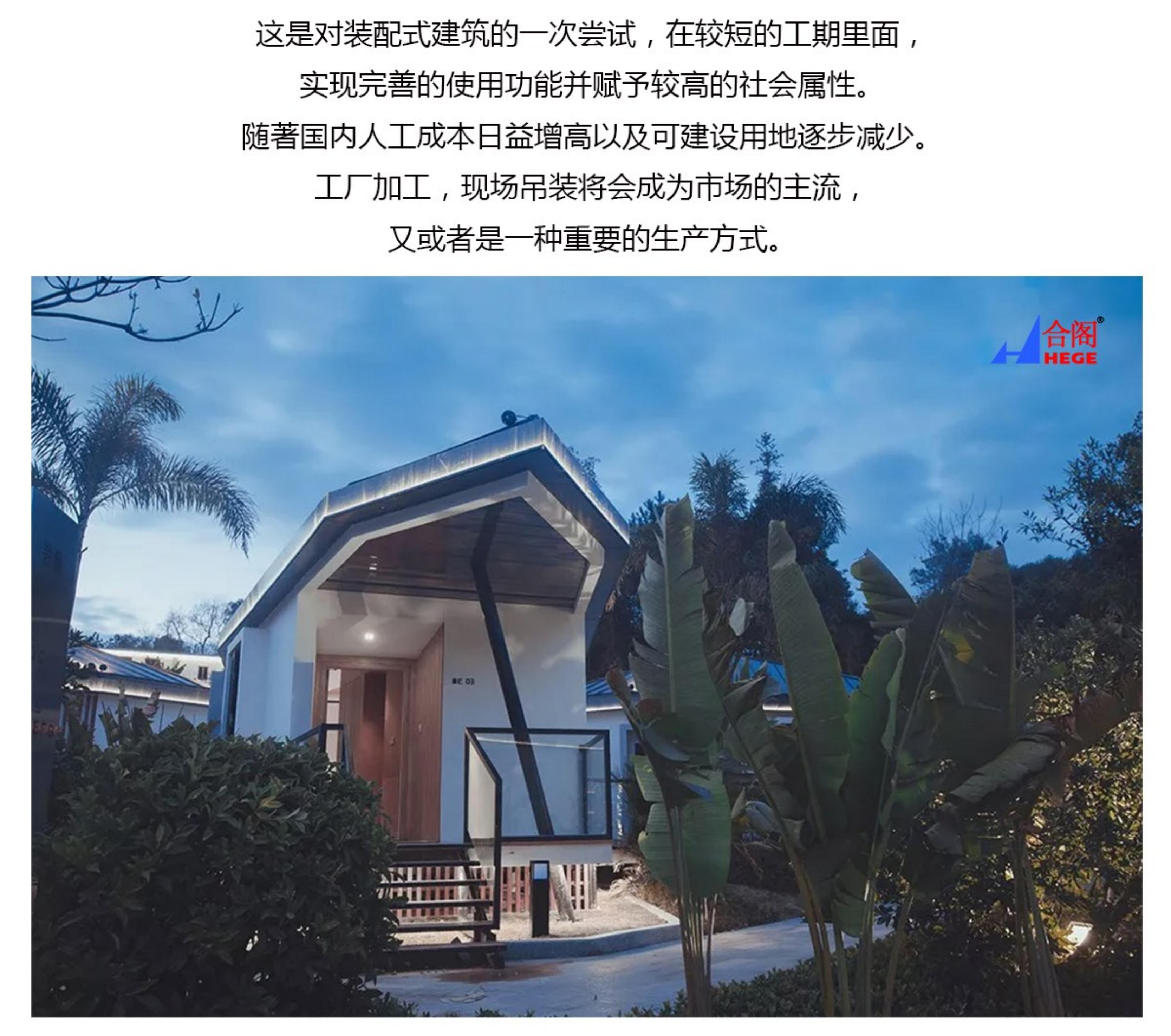 項目簡介:廣東梅州五華縣益塘風景區(qū)別墅酒店項目是由佛山市合閣鋼構(gòu)集成房屋施工建設(shè)的項目,采用輕鋼裝配式建筑體系,由合閣設(shè)計及施工建設(shè),工廠化生產(chǎn),現(xiàn)場施工像搭積木一樣,有效縮短建設(shè)周期,對景區(qū)酒店快速使用提供了安全的保障,符合國家建宅產(chǎn)業(yè)化的要求。