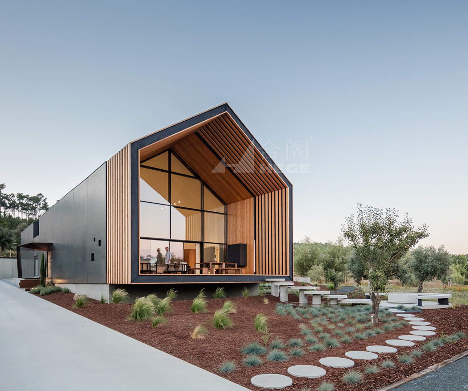 這個項目是基于模塊組成的原則建造的,讓屋頂和外墻形成一種獨特的韻律。建造運用了一種預(yù)制的黑色鋼構(gòu)板,這種材料能讓房屋和景觀更好的融合在一起,同時它的維護費用也較低。