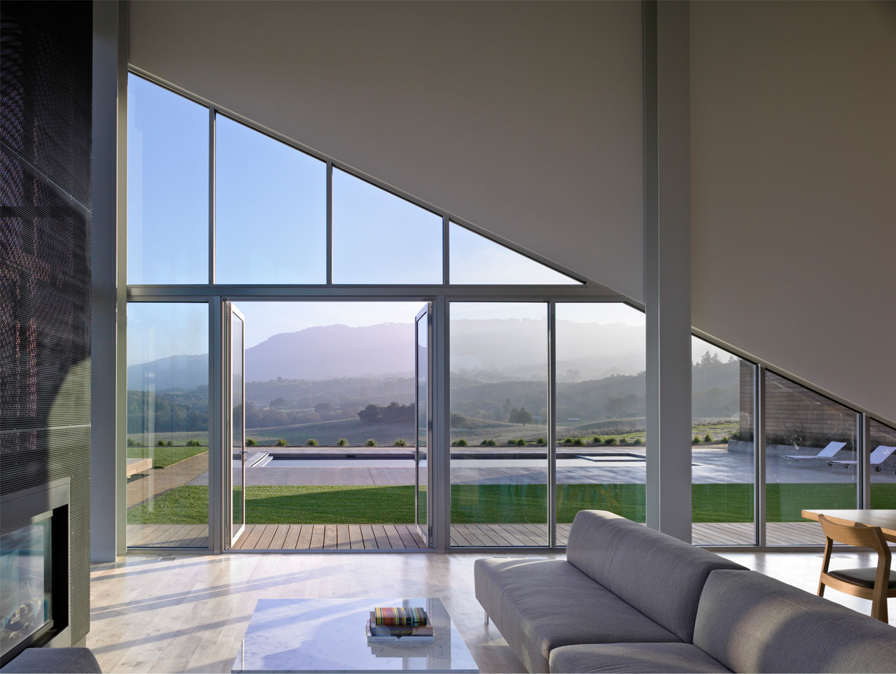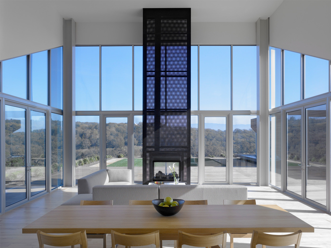 主題體量和客用體量與美景并置,并提供了對(duì)于加州景觀觀看的視角。自然與人工彼此鏡像,這兩個(gè)結(jié)構(gòu)變化又相互聯(lián)系。對(duì)于獨(dú)立車(chē)庫(kù)也是如此,這一一致性是由于普通材料和正式語(yǔ)言的混合使用,貫穿每個(gè)實(shí)體。住宅立方體這些凸角進(jìn)一步成為建筑師實(shí)現(xiàn)融合內(nèi)部和外部空間的關(guān)鍵。