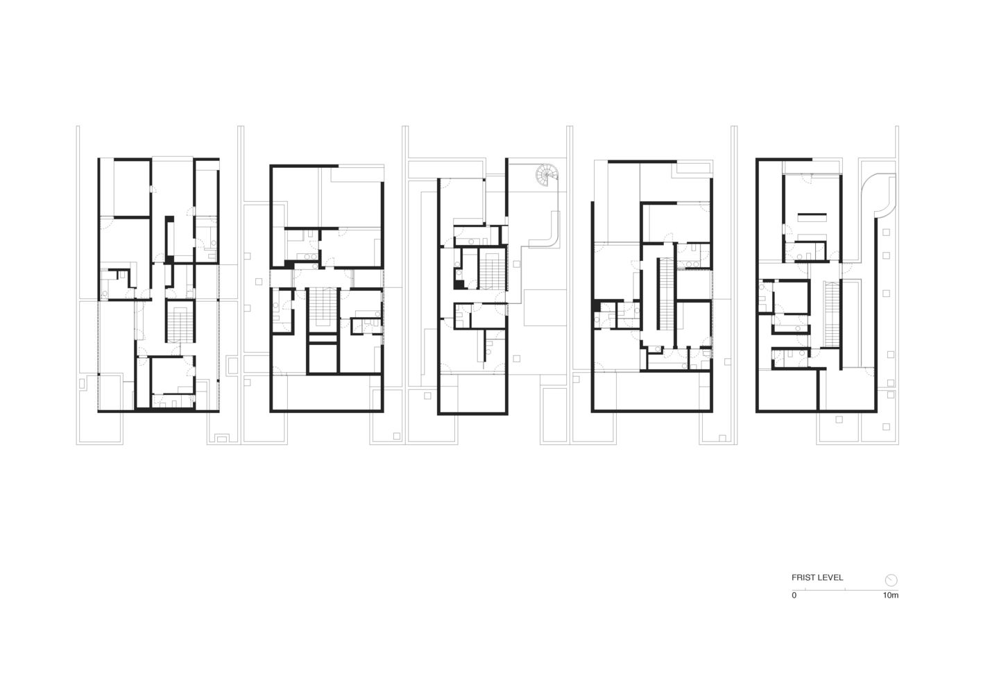 被圍墻圍起來(lái)的上層空間在部分位置開(kāi)洞,有效地保證所需的私密性。建筑的設(shè)計(jì)能做一些變化,而不影響整體的統(tǒng)一性。臥室里有更多的變化,還有更廣闊的、盡量被保護(hù)的城市景色。在俯瞰著360度全景屋頂上設(shè)置了舒適的休閑空間,將起居室和休息區(qū)結(jié)合起來(lái)作為社交空間,使其成為體驗(yàn)日落風(fēng)景的理想場(chǎng)所,在沒(méi)有遮陰時(shí)也一樣舒適。