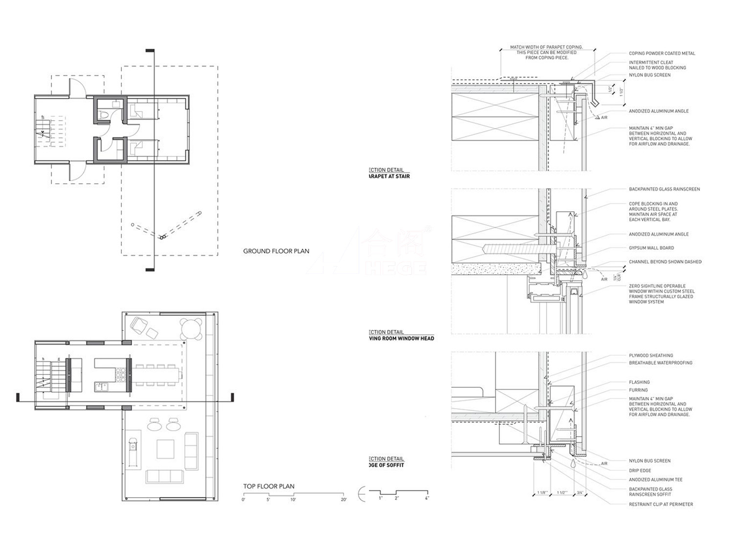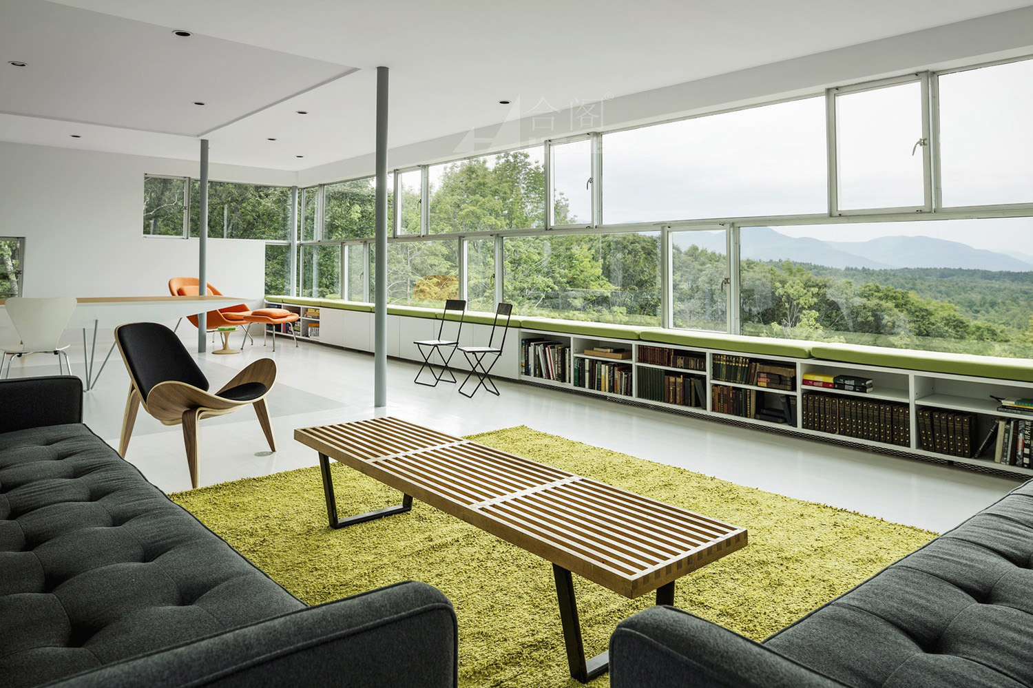 作為度假別墅,在冬季只有幾個(gè)周末會(huì)被使用,而在夏季則幾乎每個(gè)周末都會(huì)被使用??蛻粢髮⒃搫e墅設(shè)計(jì)成一個(gè)可持續(xù)發(fā)展,高效節(jié)能的建筑,并且將使用成本和維護(hù)成本降到最低。朝北面的疊放的臥室充分的利用了落地玻璃窗帶來的充足的光線和視野范圍。為了優(yōu)化節(jié)能,設(shè)計(jì)師將供熱和制冷分成了兩部分來設(shè)計(jì),為保持可持續(xù)性發(fā)展的策略,盡可能的在冬天減少加熱方式,在夏天則避免使用空調(diào)。