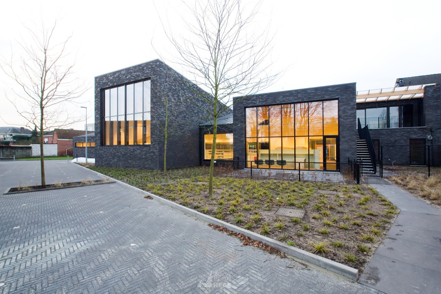 設(shè)計體現(xiàn)了對建筑尺度的感知,建筑的體量被細(xì)分成規(guī)模較小的部分,更好反映了當(dāng)?shù)氐慕ㄖ愋停@種類型與單個塊體相反。建筑看起來像一系列獨立部分,每個部分有自己的屋頂輪廓和特性。出現(xiàn)在每個獨立單元前后的有大型窗戶也標(biāo)明了分區(qū)。高標(biāo)準(zhǔn)建筑隔熱、高性能熱窗和太陽能電池板使建筑K值能達(dá)到31。白天使用置換通風(fēng),而晚上采用自然通風(fēng)。屋頂?shù)奶柲茈姵匕迕磕昴墚a(chǎn)生大約8.7千瓦時電能。