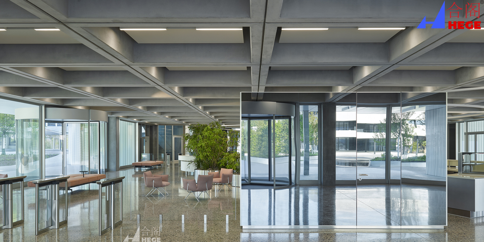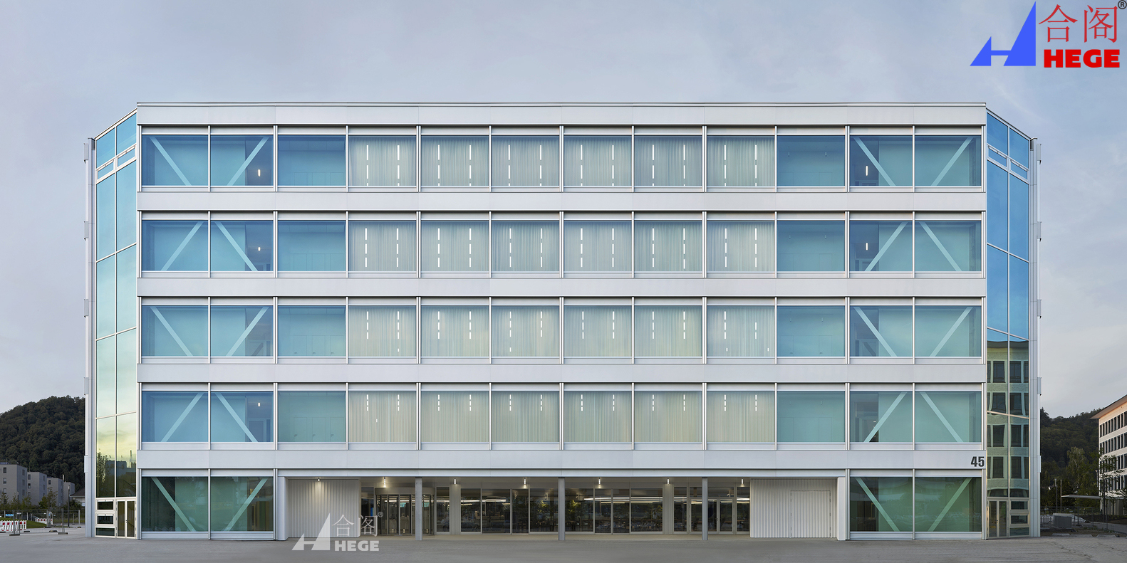 該項目是一個多功能辦公大樓。它讓人聯(lián)想到“工業(yè)宮殿”,傳達出一種尊嚴和代表性。垂直交叉的橫梁突出了其邊界,提出了其特定的結構概念,并參照其制造背景,高品質而冷靜的材料創(chuàng)造出一種精致而低調的優(yōu)雅。簡單的立方體是有重輕鋼混合搭建,高23米,占地面積為50 × 36米。最引人注目的是,將基礎設施和循環(huán)元素轉移到角落,釋放了地面上所有樓層的中心,形成一個暴露的、無柱的室內空間。這個工業(yè)立方體的開放展示了空間、視覺和象征品質,進一步體現(xiàn)在非凡的室內空間。