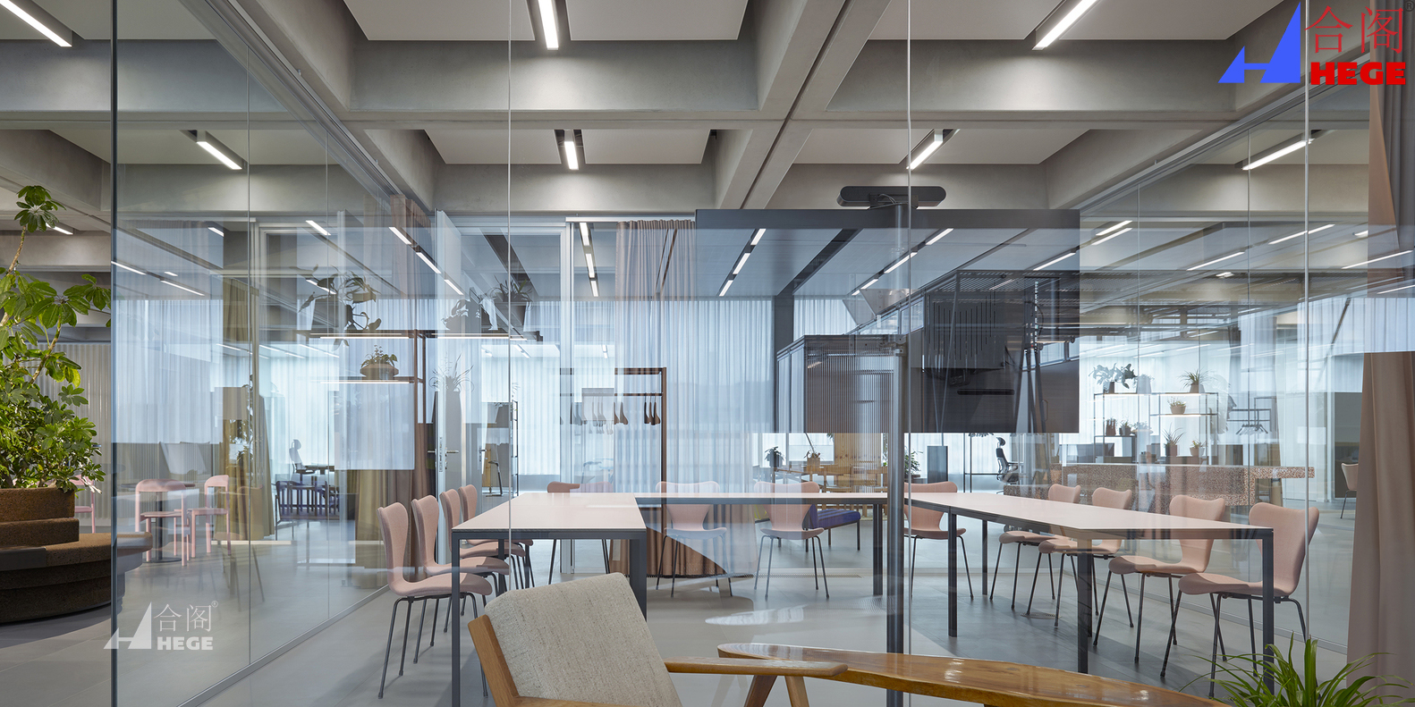 建筑一層的公共入口大廳通向一層和二層,所有樓層都通過建筑的樓梯連接,樓梯位于角落。四個樓梯一次又一次地從意想不到的角度出現(xiàn),舒適的內部允許各種各樣的聚會,從可定制的550個座位的禮堂,可以分割成三個獨立的大廳,到高度集中的個人工作區(qū)域。獨立的工作空間、可調節(jié)的辦公桌和封閉的隱私區(qū)域與分散在開放平面上的會議室混合在一起。