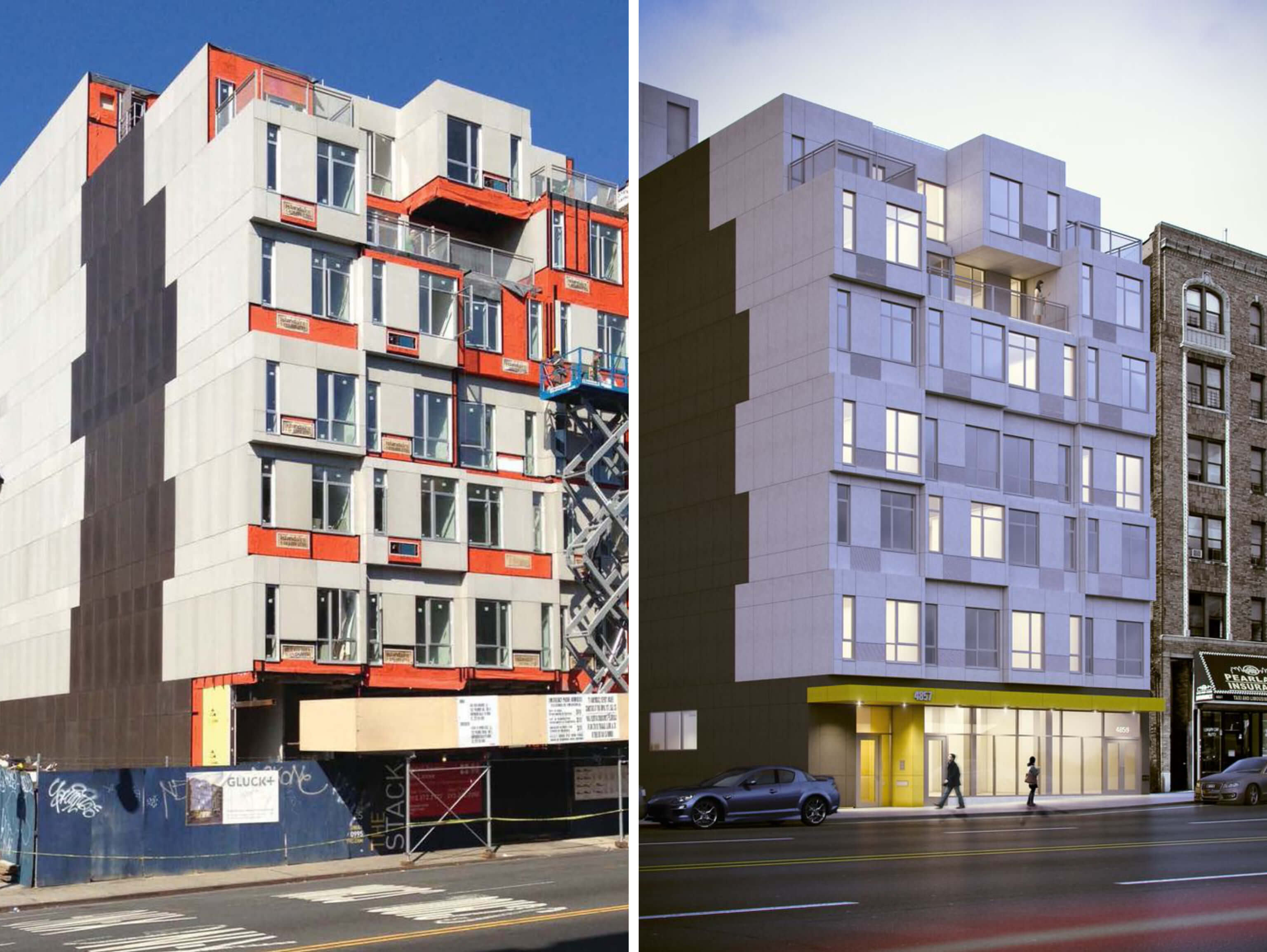 該項目有28個住宅單元(6個單間,6個一居室,14個兩居室,2個三居室)是用五十六個完整的工廠成品模塊在現(xiàn)場外預(yù)制建造的?;A(chǔ)設(shè)施和基礎(chǔ)建設(shè)在現(xiàn)場進行,在最初的三個月里,6層樓的建筑同時在工廠完成。在現(xiàn)澆混凝土基礎(chǔ)上建造了一個鋼柱網(wǎng)格結(jié)構(gòu),以承托堆疊的模塊。設(shè)計允許更寬的凈跨度,以便在第一層滿足商業(yè)租賃功能。安裝時間僅為四周。它的施工時間約10個月——比傳統(tǒng)施工方法短6個月。