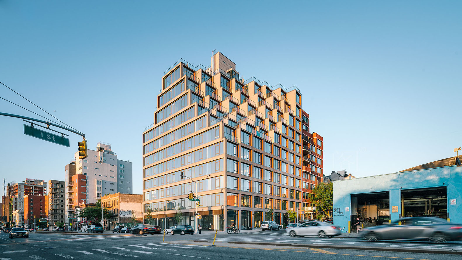 該建筑是一個(gè)模塊化公寓,由多個(gè)模塊單元組成。每個(gè)單元都可以再工廠制定好后運(yùn)輸?shù)浆F(xiàn)場(chǎng)進(jìn)行組裝?,F(xiàn)代簡(jiǎn)潔的線條和無(wú)瑕疵的幾何形態(tài)在建筑外部顯得尤為突出,開(kāi)敞的大堂,24小時(shí)門衛(wèi)和虛擬接待,具有更舒適,自然,幾乎禪宗般的光環(huán),突出各類不同材料。在大廳的休息區(qū),鮮活的綠植墻壁通過(guò)前后透明的玻璃,獲得充足的光照。